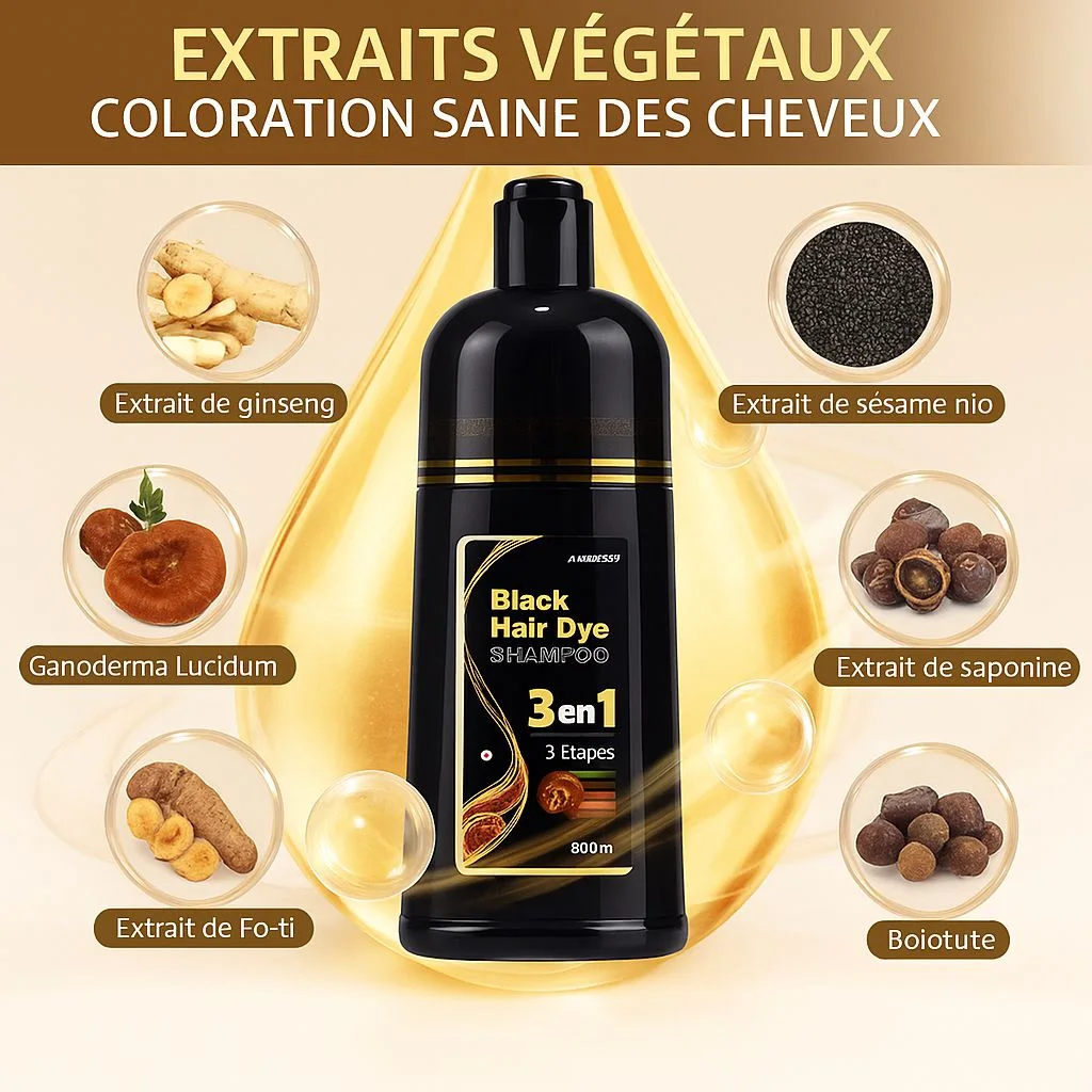 🖤 Shampooing Colorant Naturel – Retrouve la Couleur Noire de Tes Cheveux en Quelques Minutes !